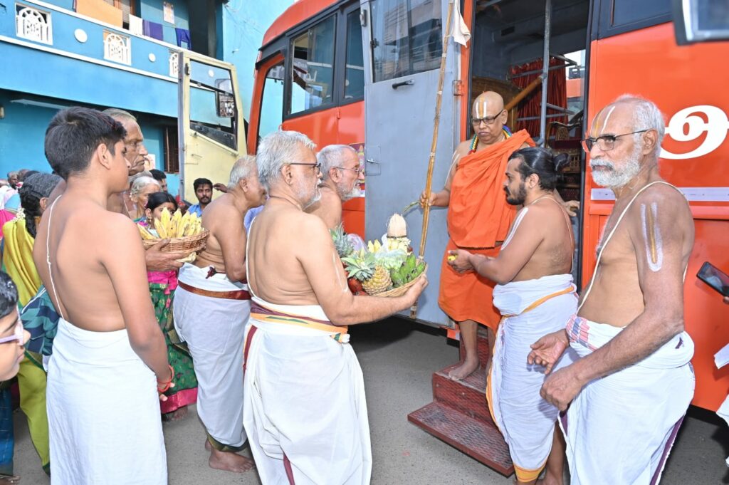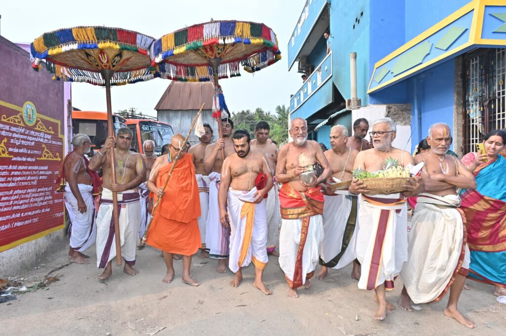 A large number of people thronged the venue and paid their respects to Seer, besides seeking his blessings. The residents of Kappur, too, gave a red-carpet welcome to the Seer and by receiving him with warmth and affection. Our renowned temple had earlier witnessed Mangalasasanam of the 42, 43 and 45th Azhagiya Singar. Our age-old temple is situated in between ‘Tirukovilur’, ‘Padur’ and ‘Perumbakkam’. Needless to say, we had incurred a sizeable expenditure for organising such a huge event.